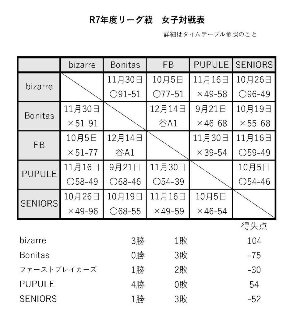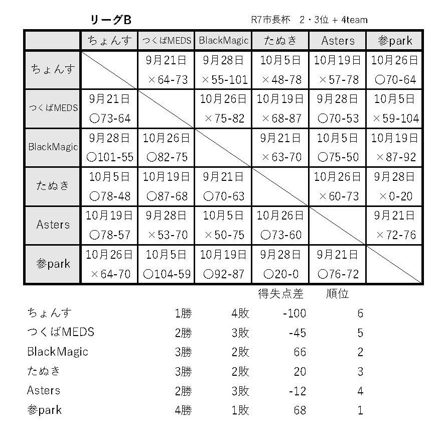 R7リーグ戦12/7結果(男子最終結果)
