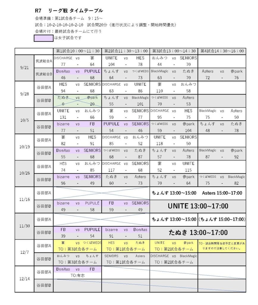 11月30日結果をふまえ、タイムテーブル及び対戦表を更新しました。